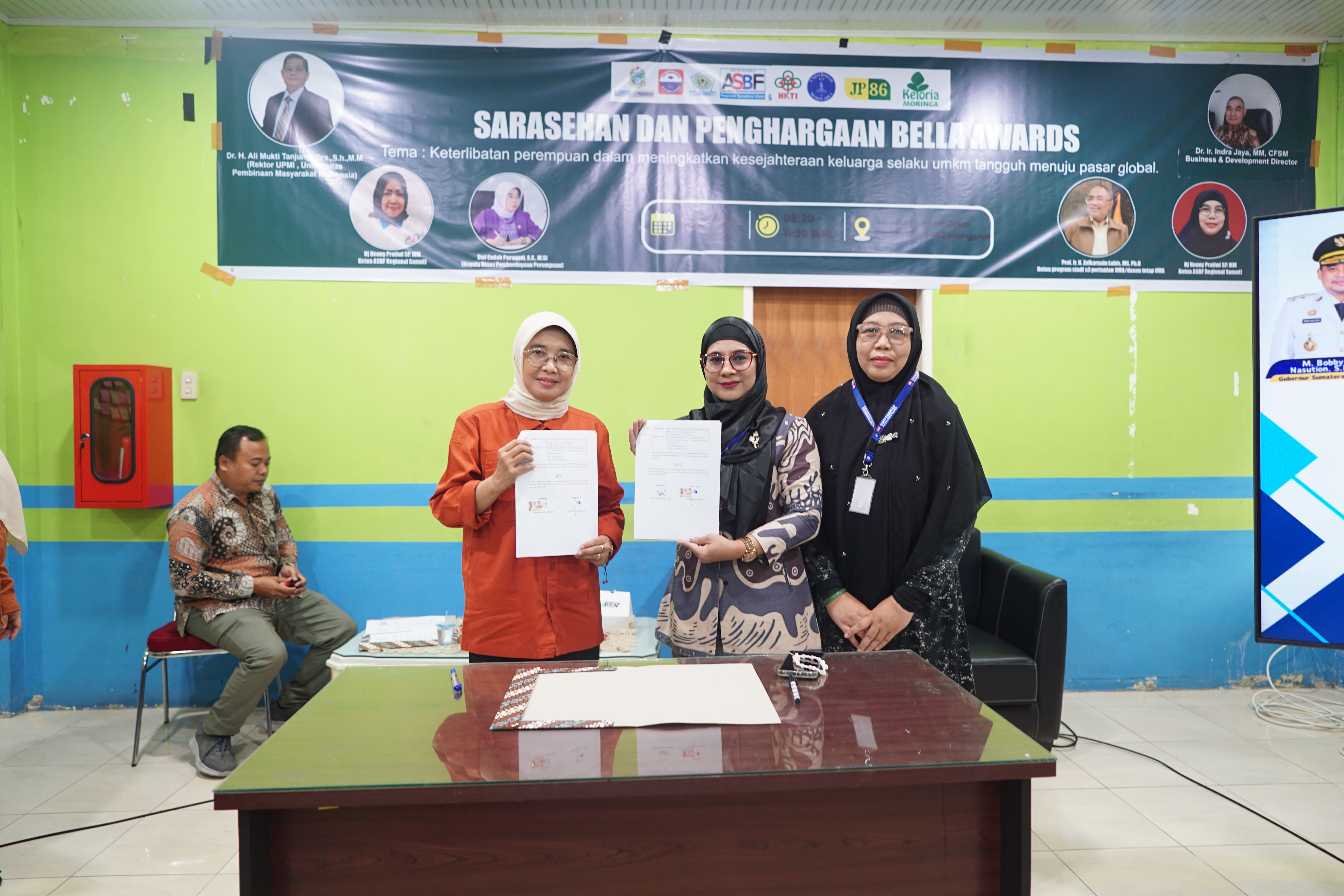 Acara yang mengusung tema “Keterlibatan Perempuan Dalam Meningkatkan Kesejahteraan Keluarga Selaku UMKM Tangguh Menuju Pasar Global” ini dihadiri oleh puluhan pelaku industri rumahan, perwakilan perempuan pemilik UMKM, perwakilan ASBF, serta para pemenang BELLA Award tingkat Sumatera Utara.